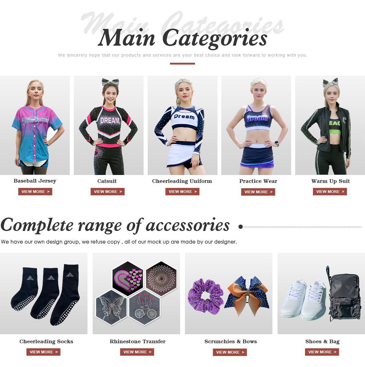 Productos principales:Uniforme de porristas, disfraz de animadora, Pompón, trajes de porristas, transferencia de calor